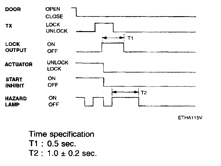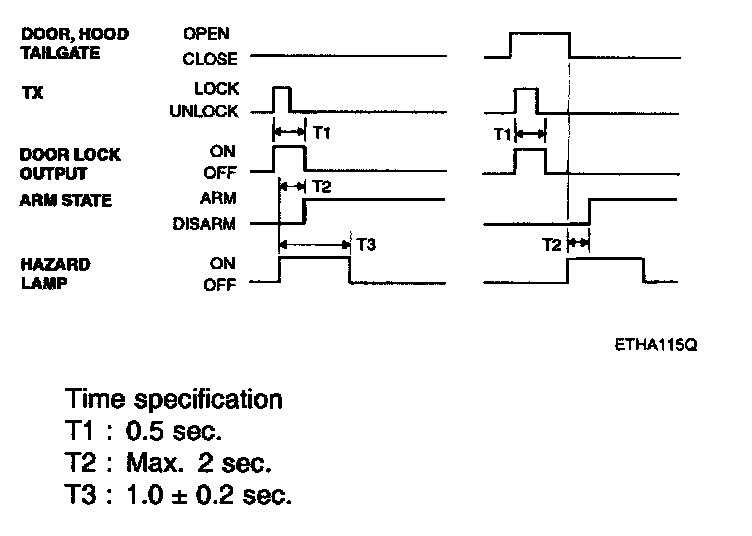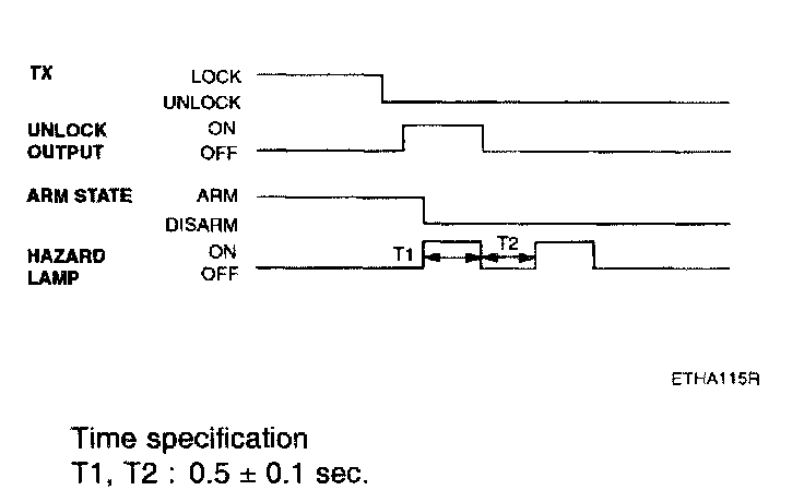 - Pressing the unlock button on the TX key. The hazard lamps shall be flashed twice for 1 sec period (of cycle), 50% duty rate.