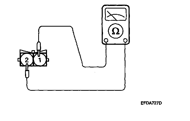 1. Disconnect the knock sensor connector and measure resistance between terminals 1 and 2.