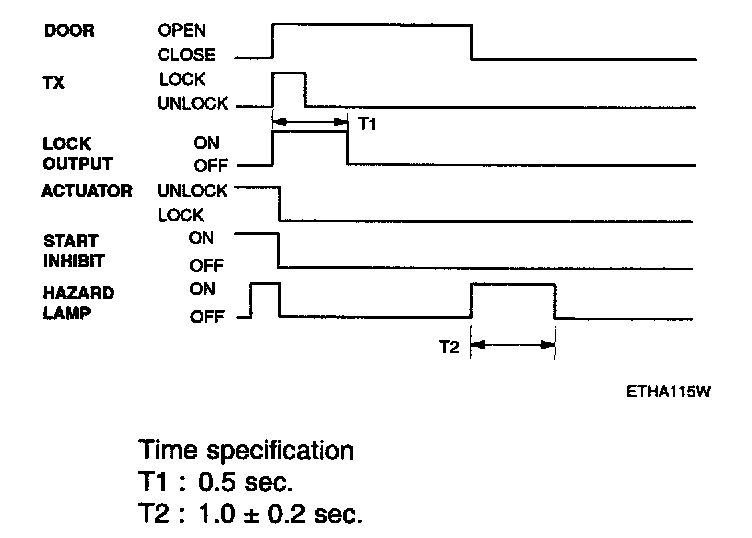 If transmitter(TX) lock signal is received when a door, trunk or hood is open, then lock output is given but a flash of hazard is not given.
