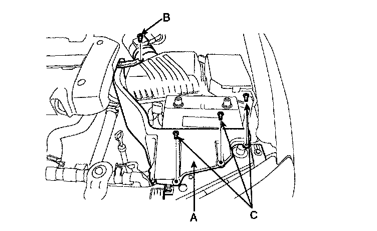 2. Remove the heat shield(A) (Bolt: 1EA(B), Retainer: 3EA(C))