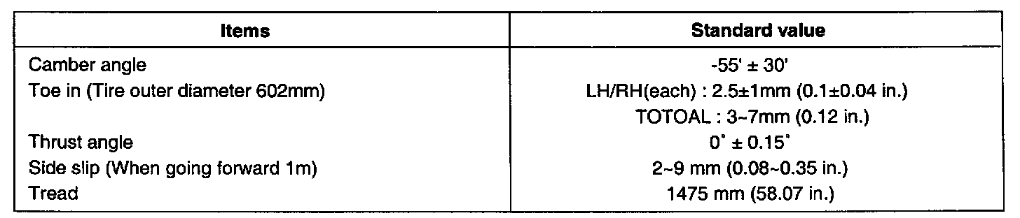 NOTE: Difference between left and right camber angle is within 0°30'.