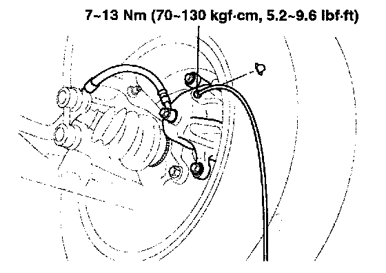 3. Loosen the right-rear brake bleed screw to allow air to escape from the system. Then tighten the bleed screw securely.
