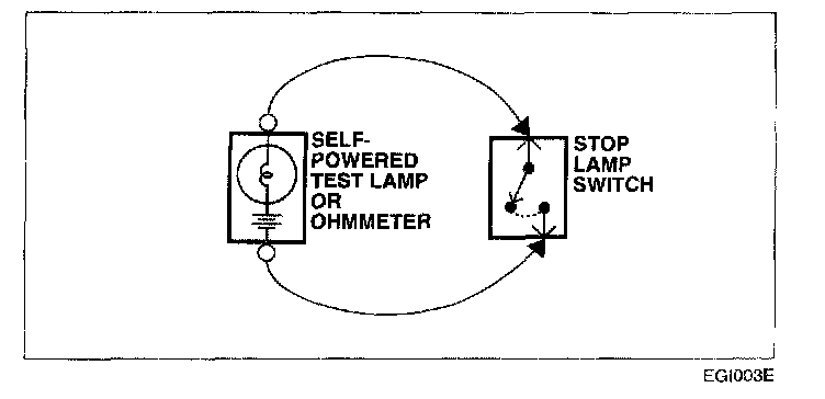 An ohmmeter can be used in place of a self-powered test lamp. The ohmmeter shows how much resistance there is between two points along a circuit. Low resistance means good continuity.