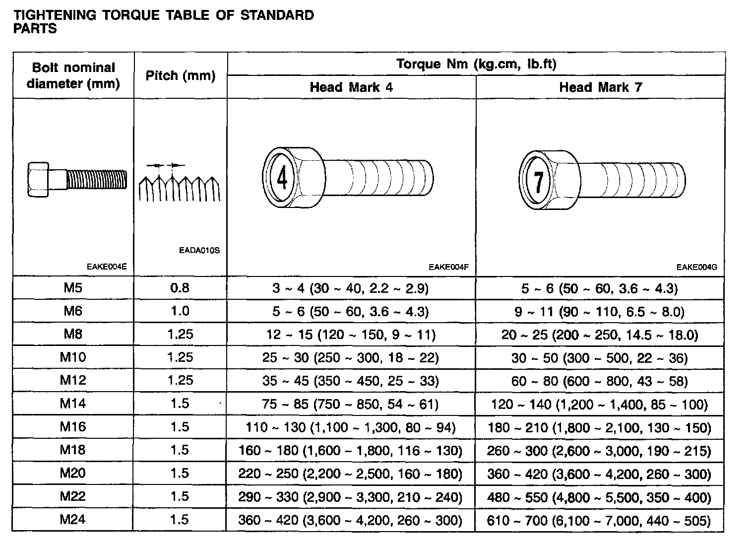TIGHTENING TORQUE TABLE OF STANDARD PARTS