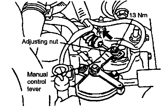 2. Loosen the control cable to the manual control lever coupling nut to free the cable and lever.