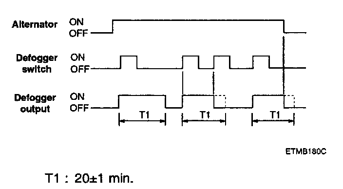 1. After ALT "L" ON, if the defogger is switched ON, the defogger output is ON for 20 minutes duration.