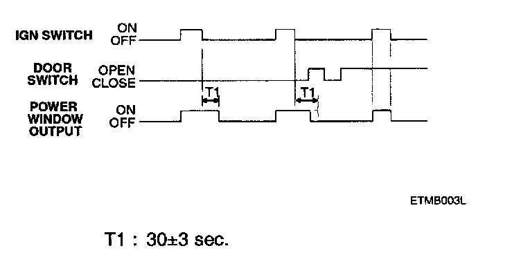 b. When the ignition is switched OFF the power window output is maintained ON for 30 seconds and then turned OFF.