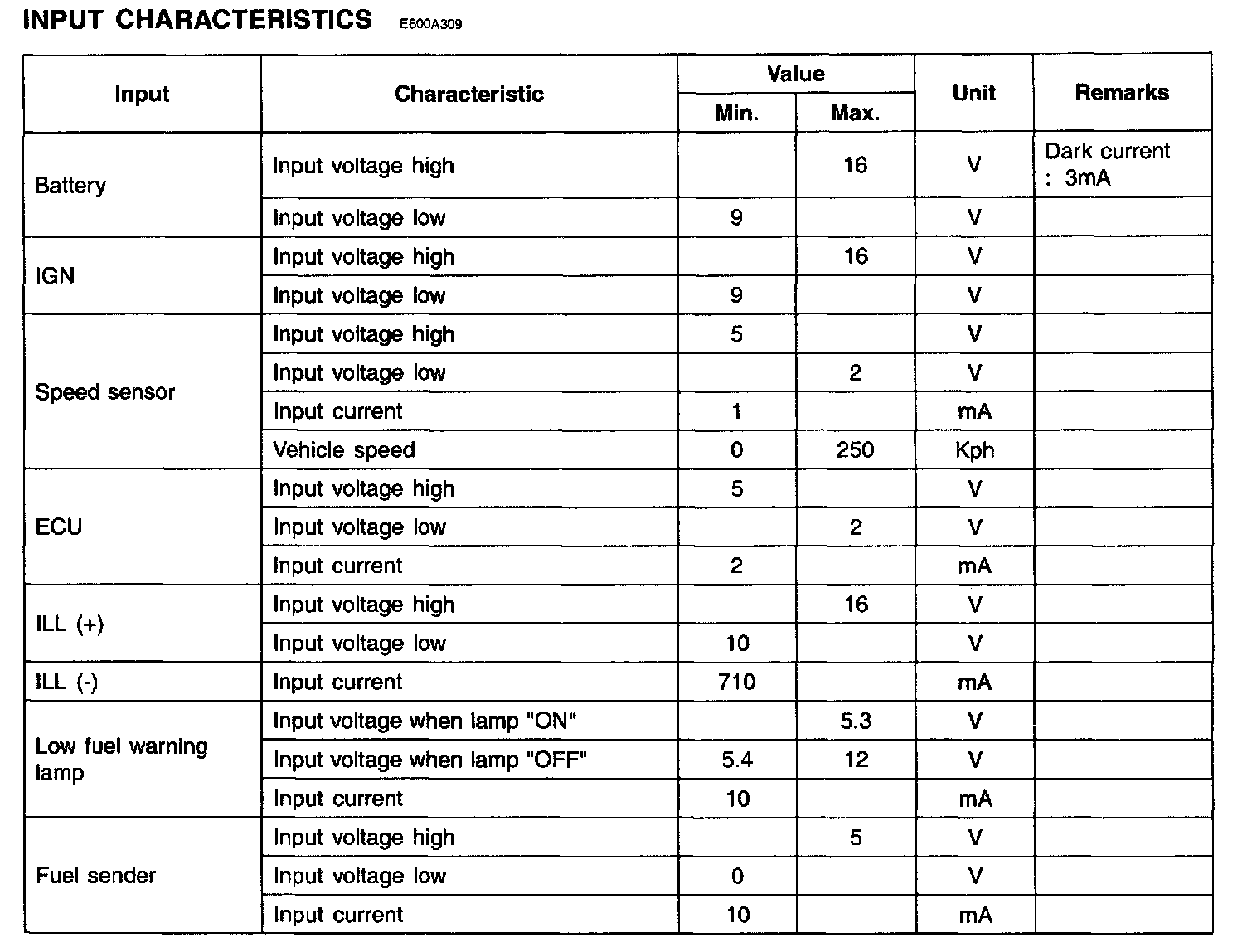 Vehicle Speed Sensor: Specifications