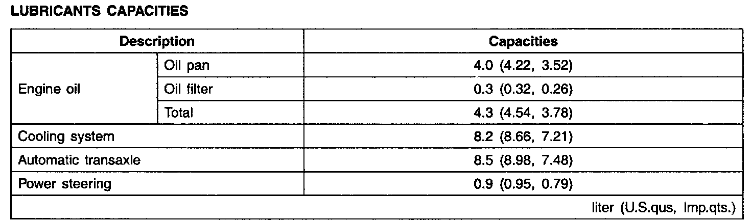 General Capacities Specifications