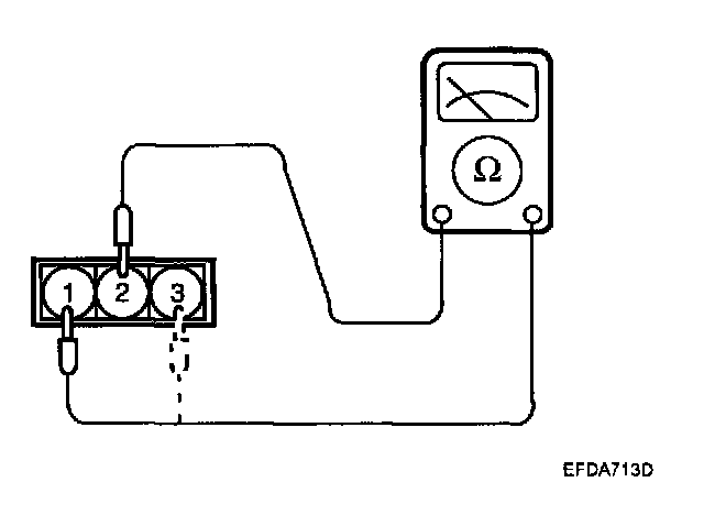 3. Connect an analog ohmmeter between terminals 2 (sensor ground) and terminal 1 (sensor output).