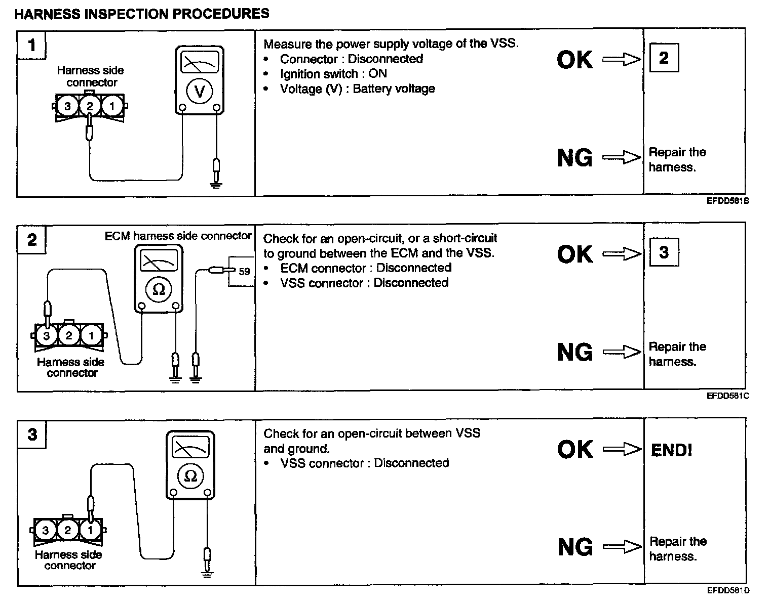 If there is an open or short circuit in the vehicle speed sensor signal circuit,the engine may stall when the vehicle decelerates to a stop.