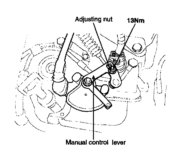 2. Loosen the control cable to manual control lever coupling nut to free the cable and lever.