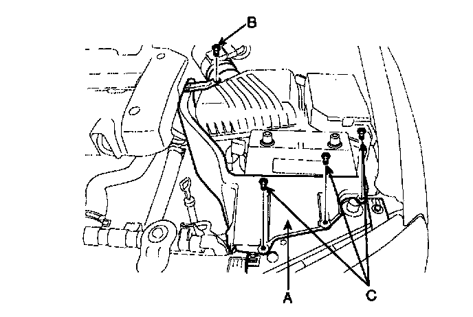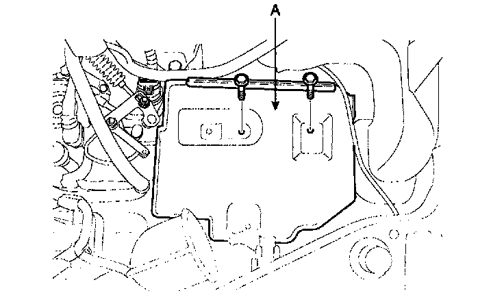 2. Remove the heat shield (A) (Bolt: 1EA (B), Retainer: 3EA(C)).