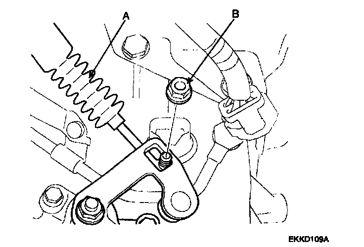 7. Remove the control cable to transaxle range switch (A) mounting nut (B).