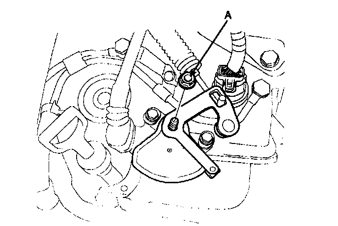 8. Remove the transaxle range switch manual lever mounting nut (A).