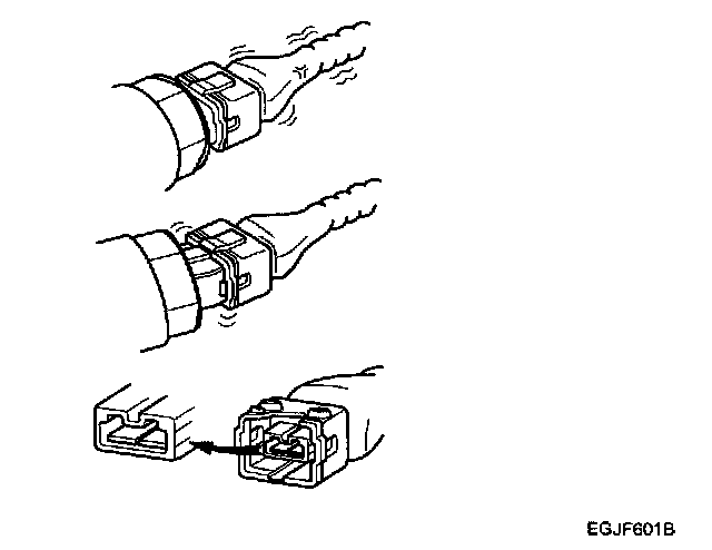 :Lightly shake the connector and wiring harness vertically and then horizontally.
