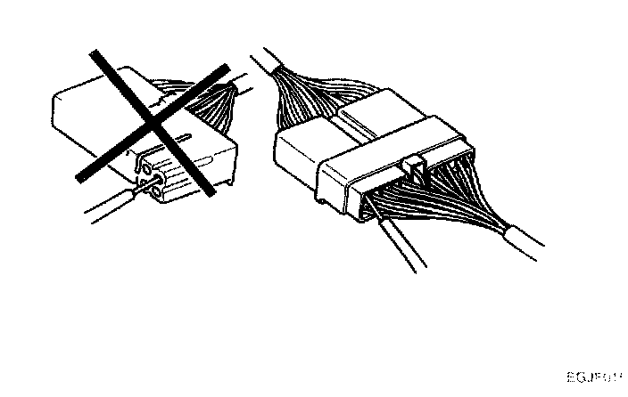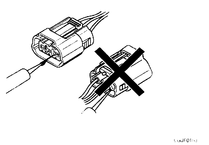 e. Check waterproof connector terminals from the connector side. Waterproof connectors cannot be accessed from harness side.