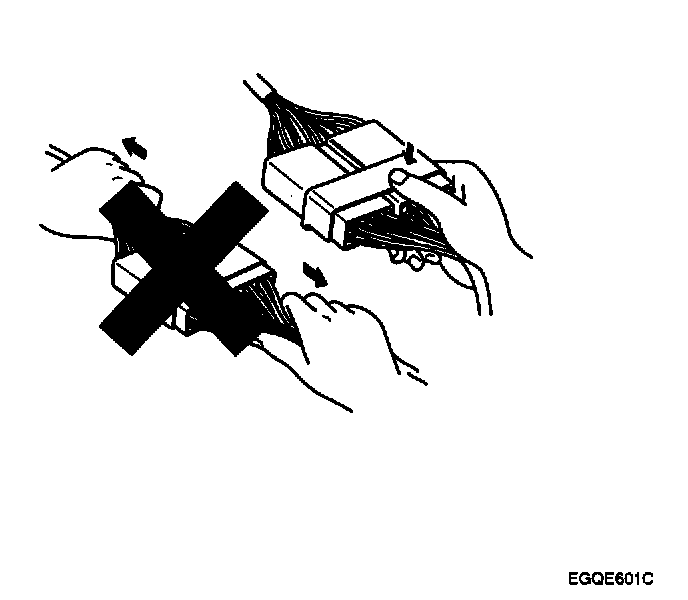 3. Slightly shake the connector and wiring harness vertically and horizontally.
