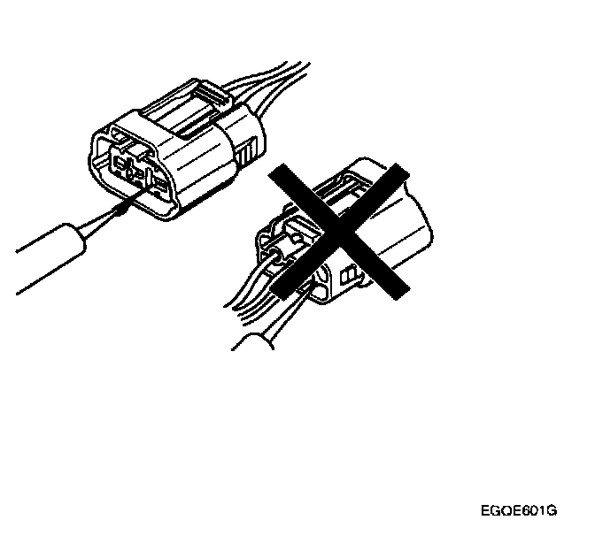 e. Check waterproof connector terminals from the connector side. Waterproof connectors cannot be accessed from harness side.