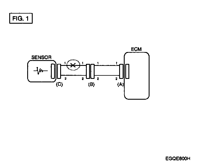 If an open circuit occurs (as seen in [FIG. 1]), it can be found by performing Step 2 (Continuity Check Method) or Step 3 (Voltage Check Method) as shown below.