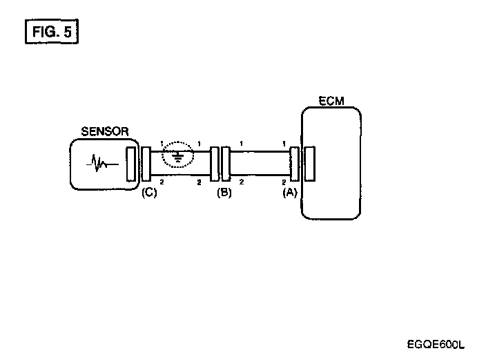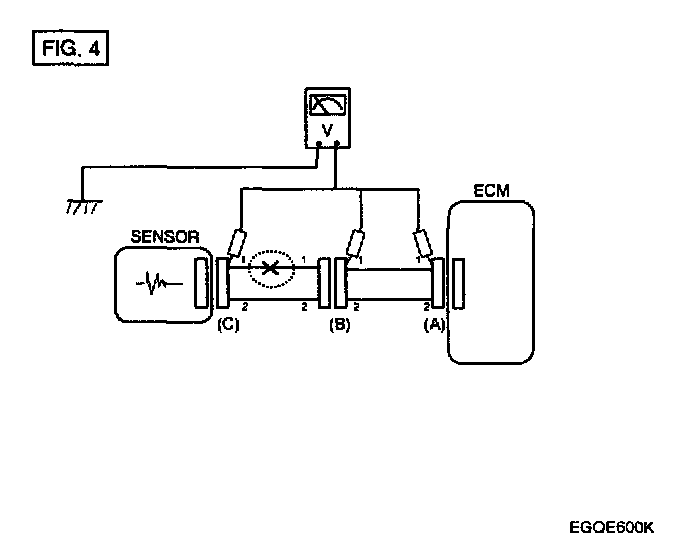 a. With each connector still connected, measure the voltage between the chassis ground and terminal 1 of each connectors (A), (B) and (C) as shown in [FIG. 4].