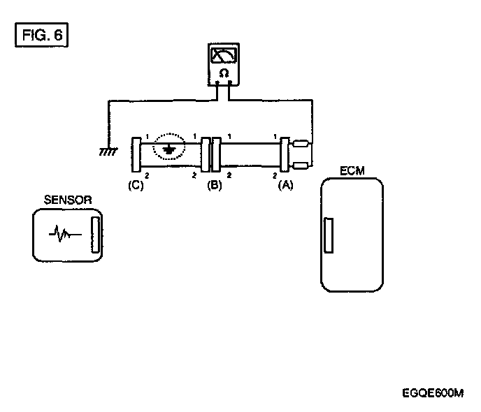 a. Disconnect connectors (A), (C) and measure for resistance between connector (A) and Chassis Ground as shown in [FIG. 6].