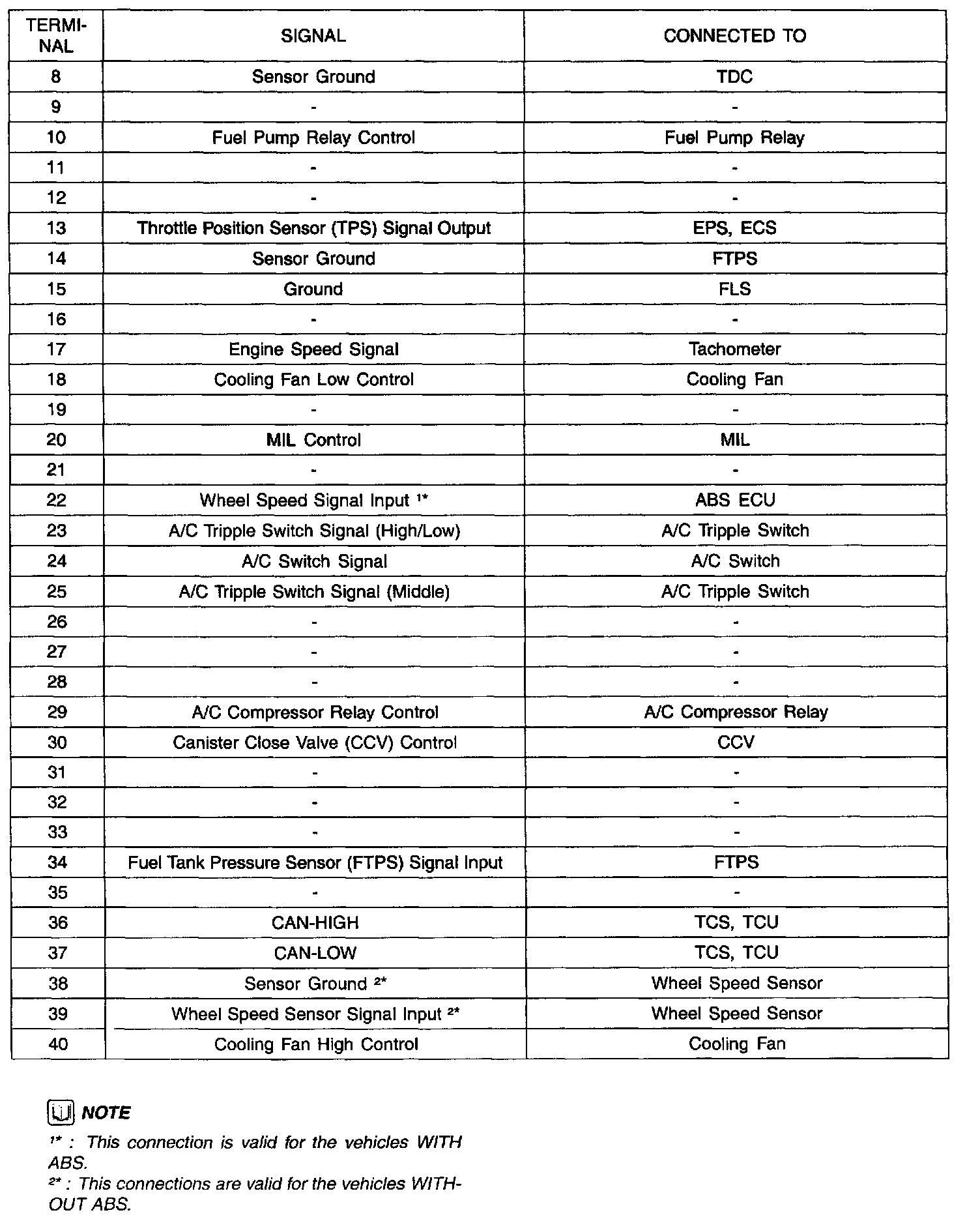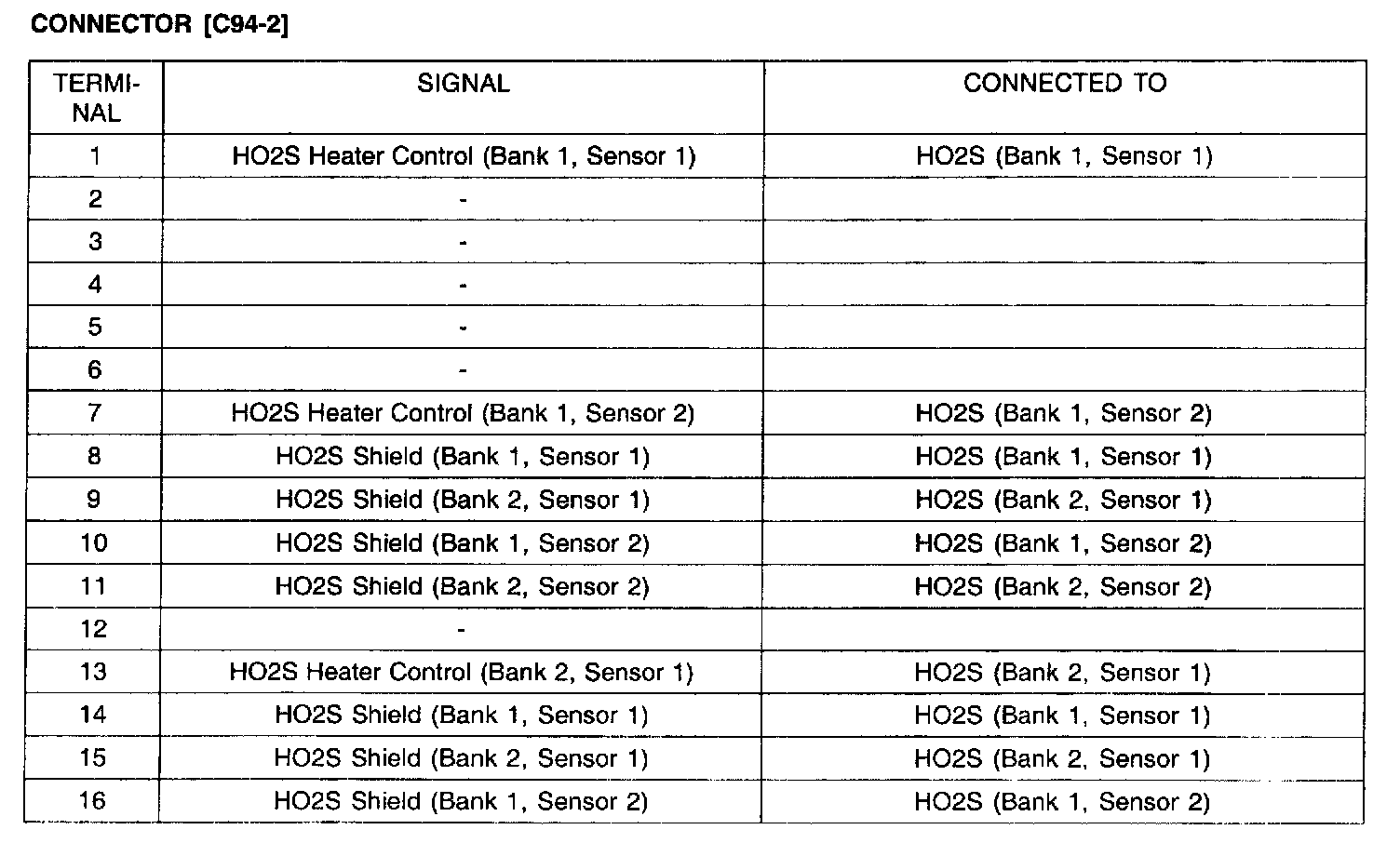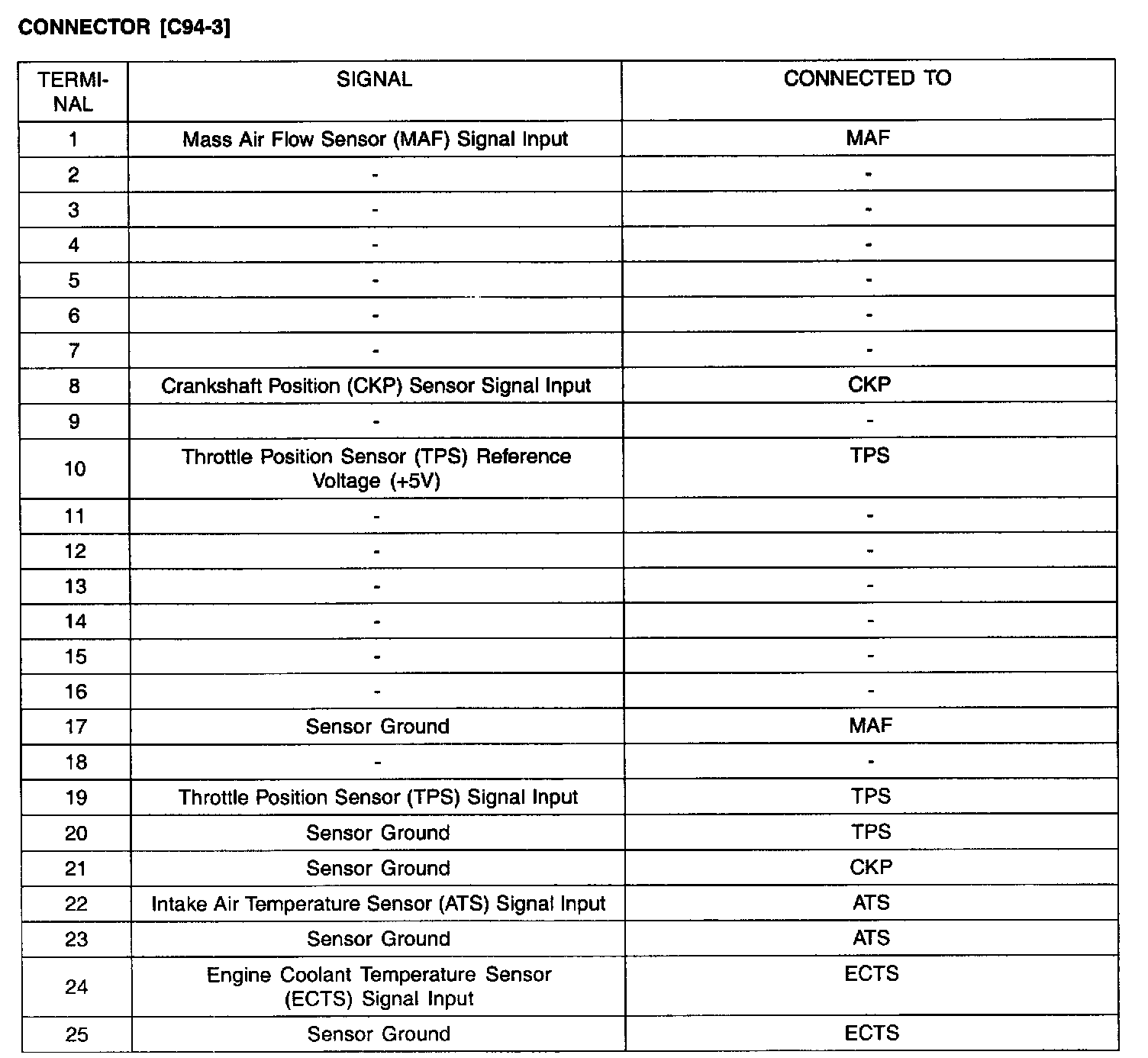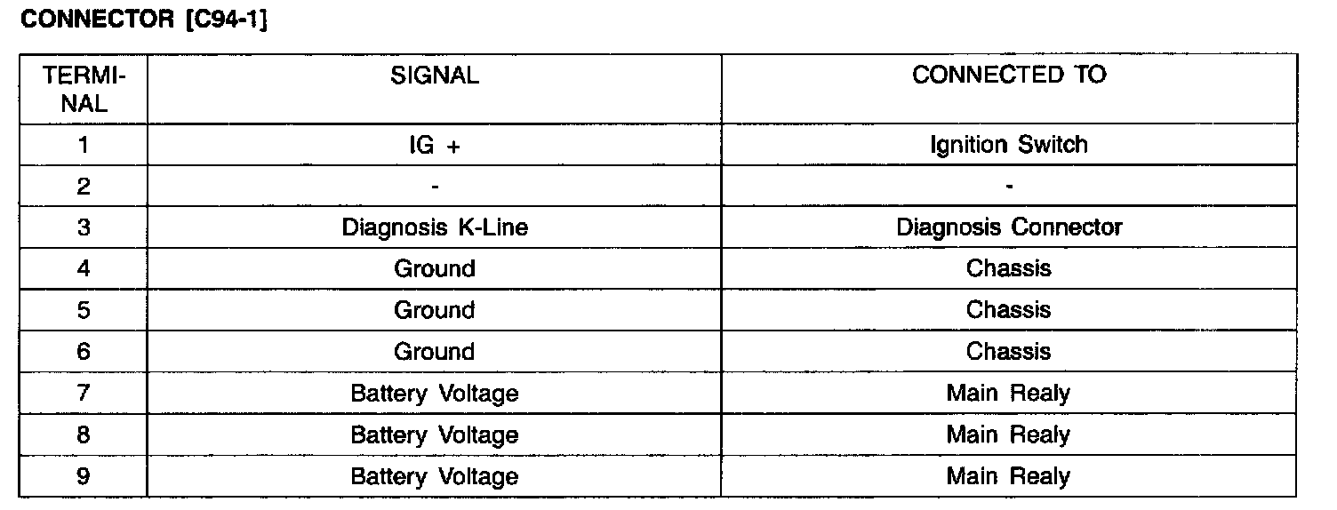 ECM Terminal LayoutCONNECTOR (C94-1)