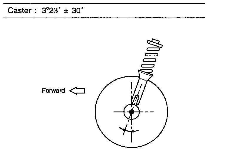 FRONT WHEEL ALIGNMENTWhen using a wheel alignment tester to inspect the front wheel alignment, always position the car on a level surface with the front wheels facing straight ahead. Prior to inspection, make sure that the front suspension and steering system are in normal operating conditions and that the wheels and tires face straight ahead and the tires are inflated to the specified pressure.