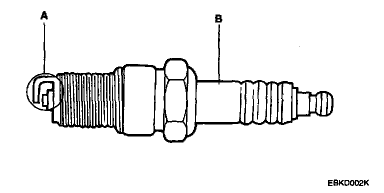 3. Inspect the electrodes(A) and ceramic insulator(B).