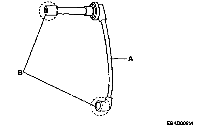 5. Carefully remove the spark plug cable by pulling on the rubber boots(A). Check the condition of the spark plug cable terminals(B), It any terminal is corroded, clean it, and it it's broken or distorted, replace the spark plug cable.