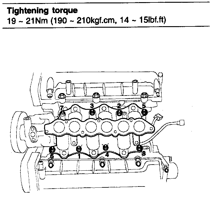 19 - 21 Nm (190 - 210 kgf-cm, 14 - 15 ft. lbs.)
