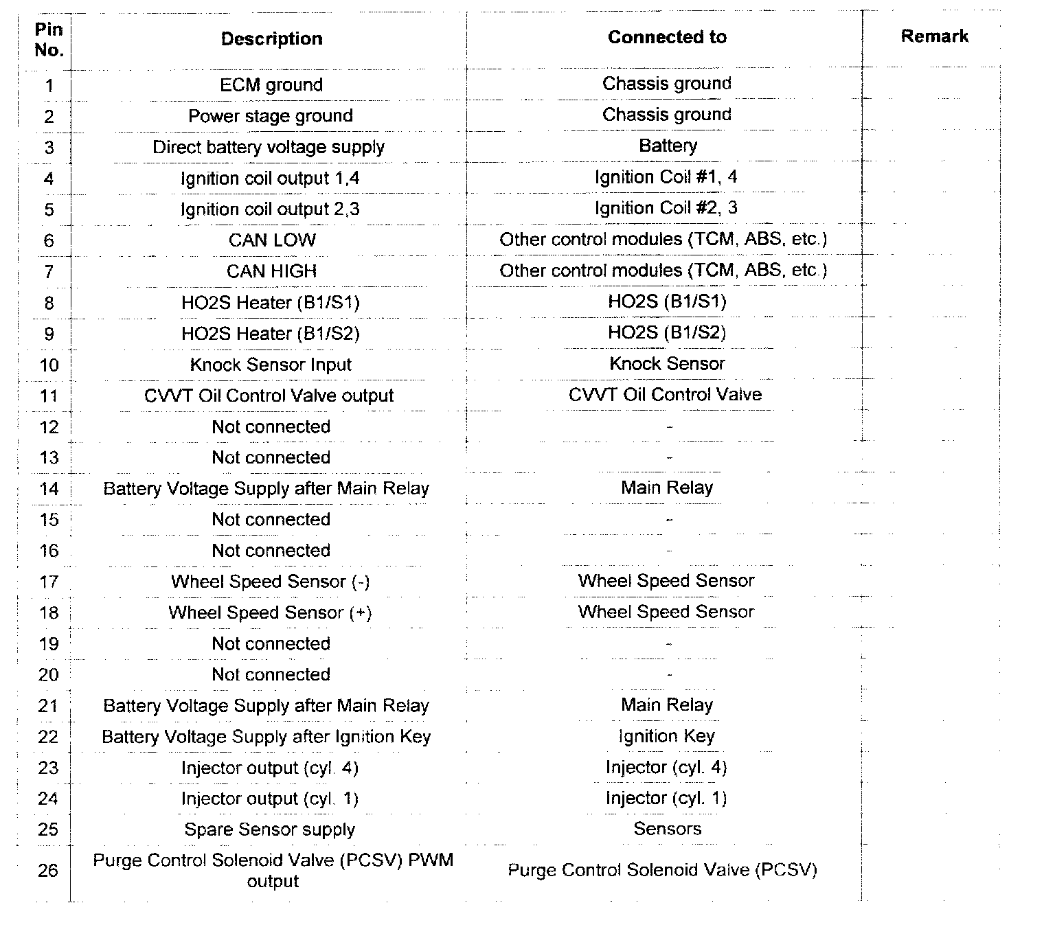 Pin No. 1 - 26: