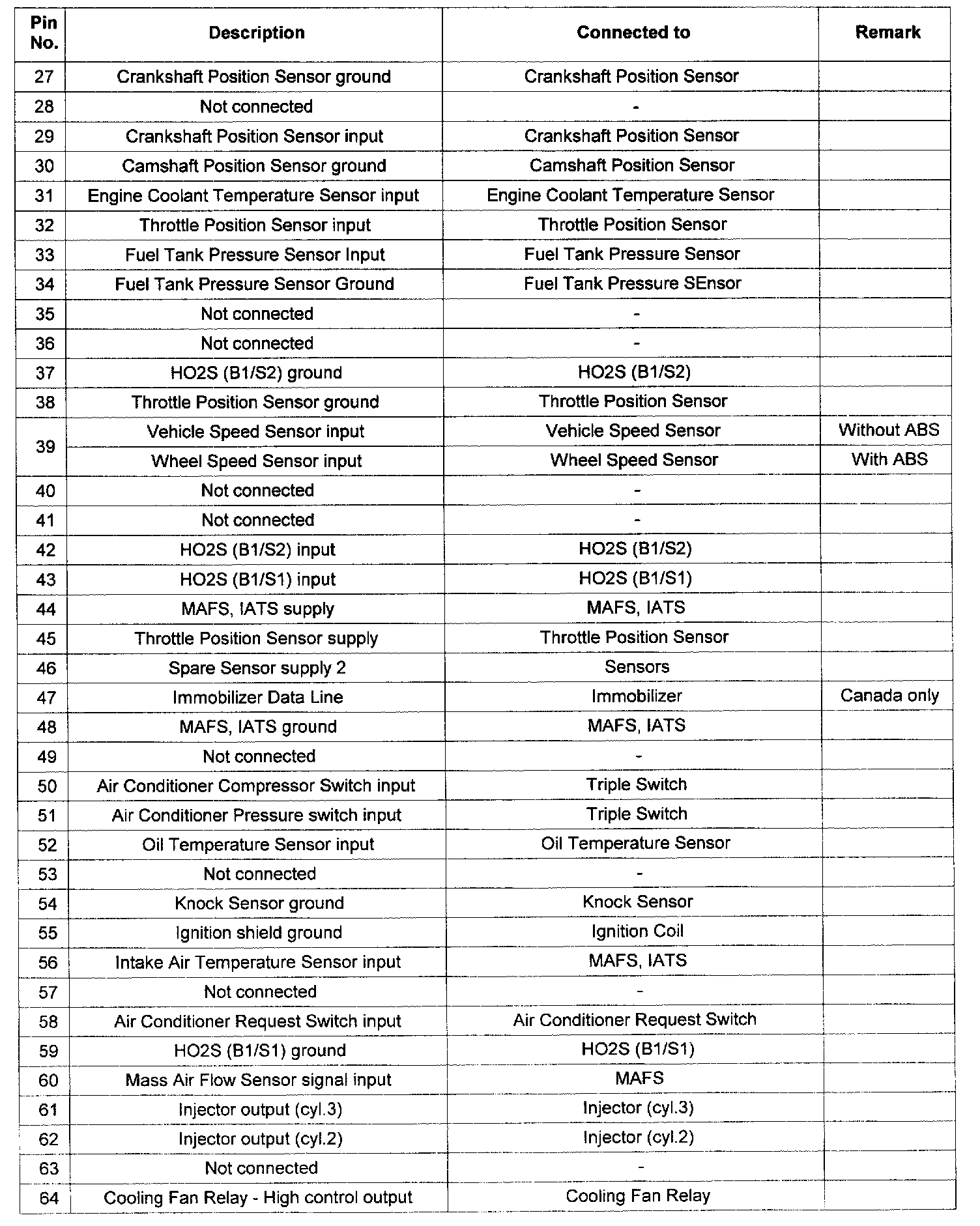 Pin No. 27 - 64: