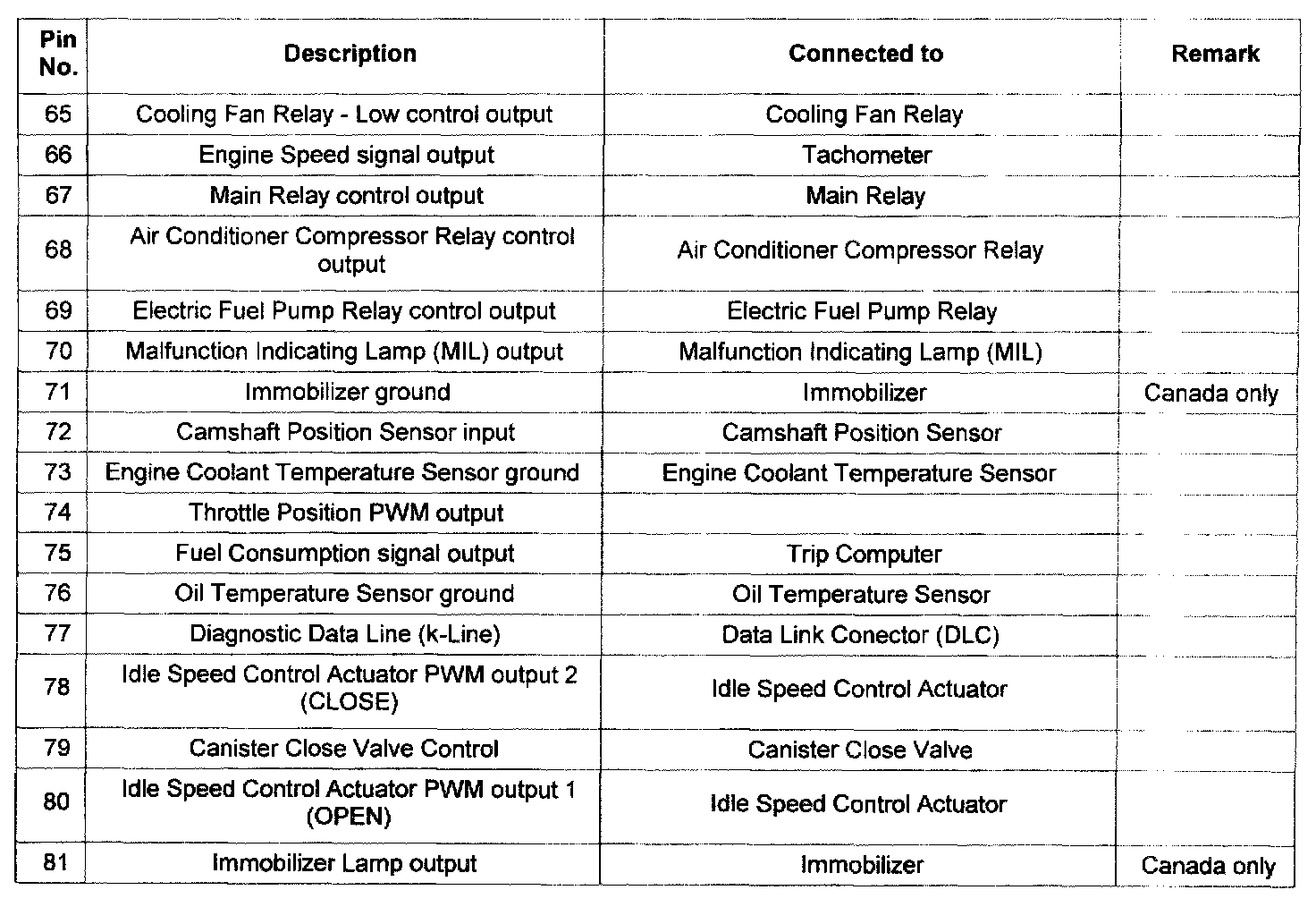 Pin No. 65 - 81: