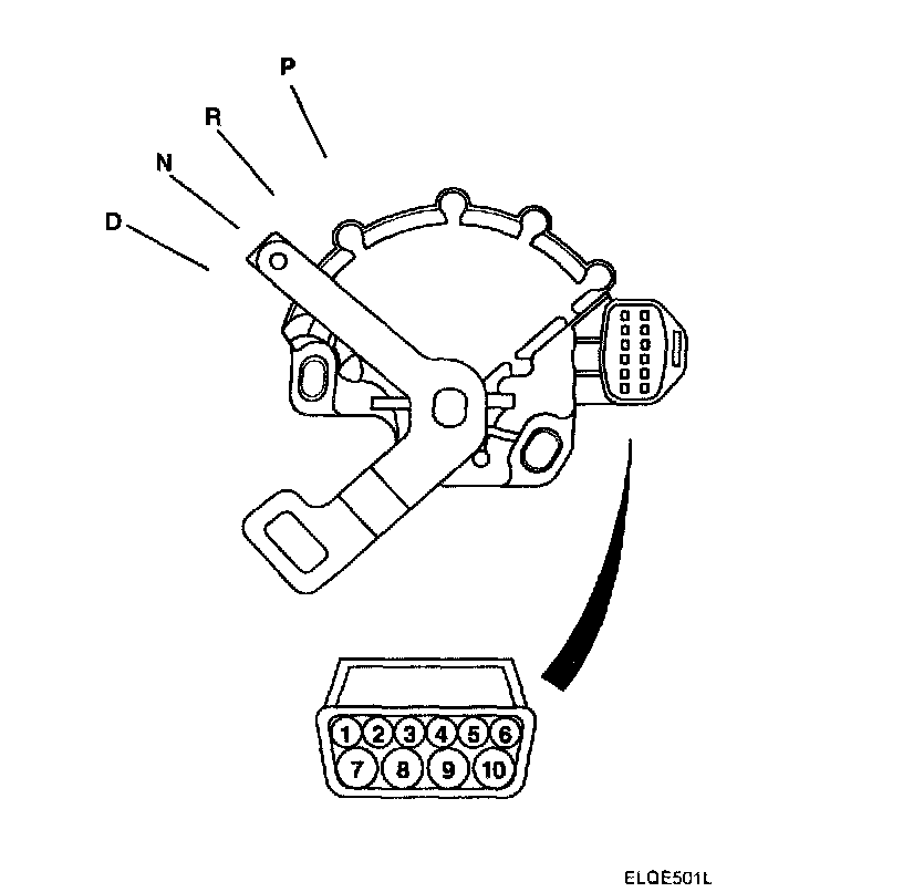 9. If there are not continuity between the terminals in the table above for each switch position, replace the inhibitor switch,