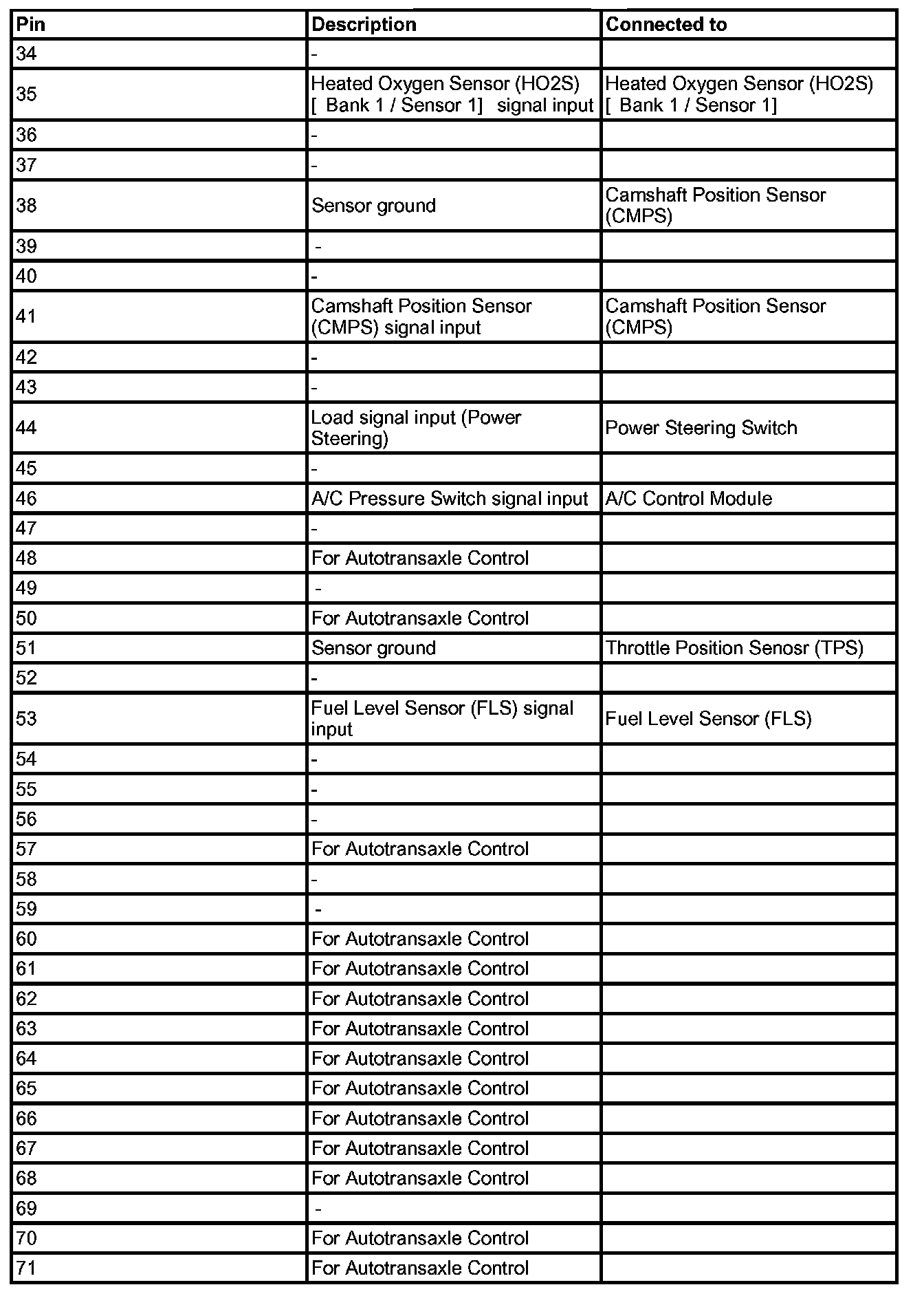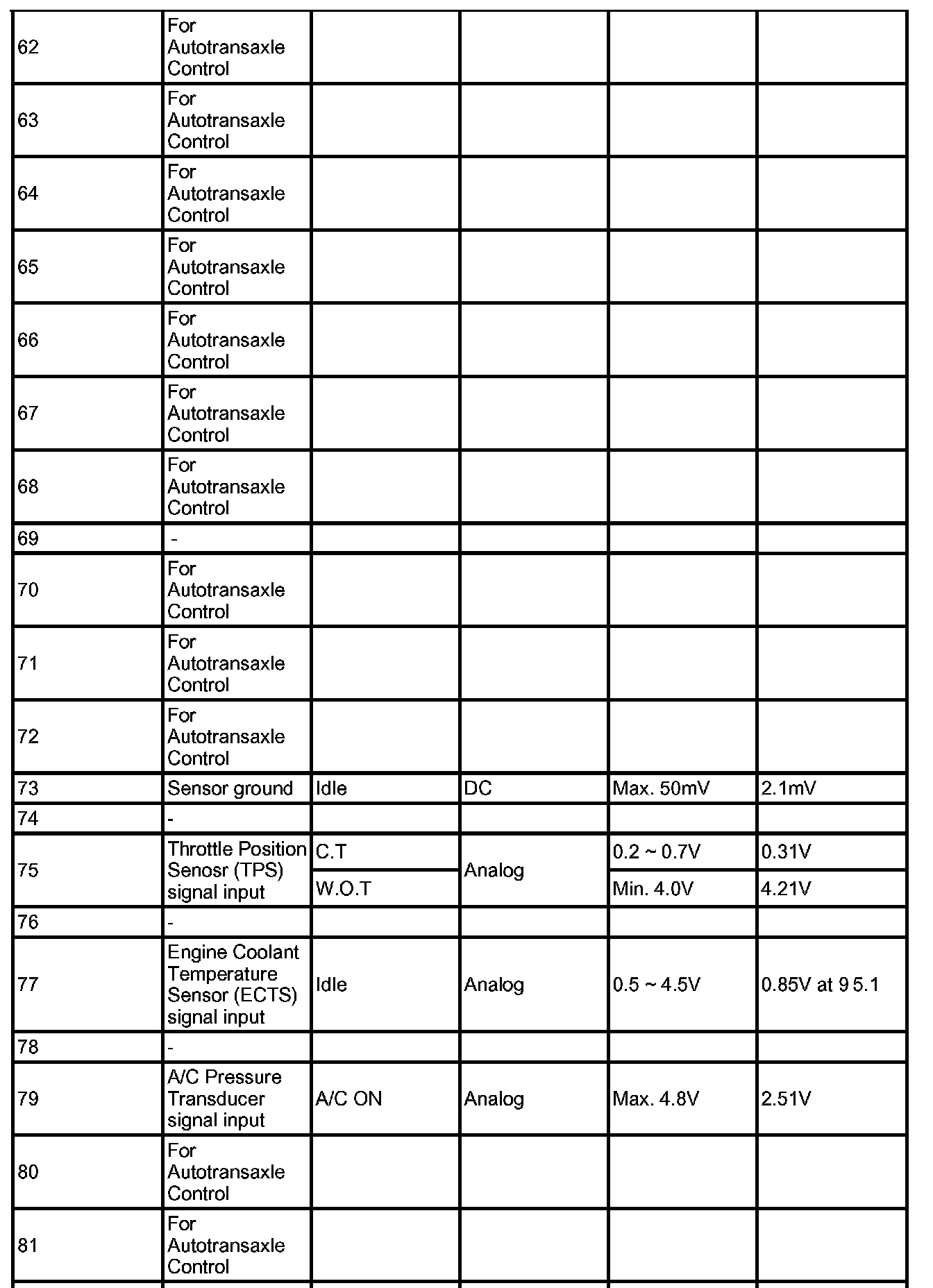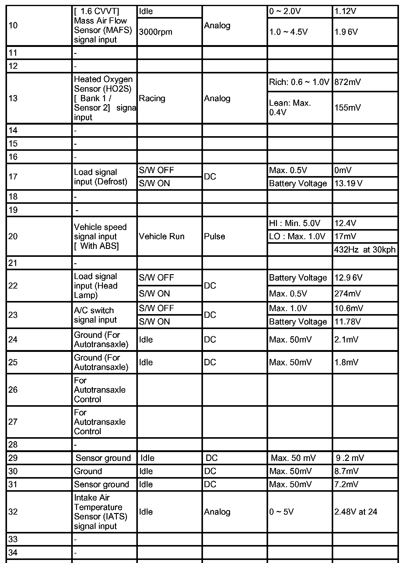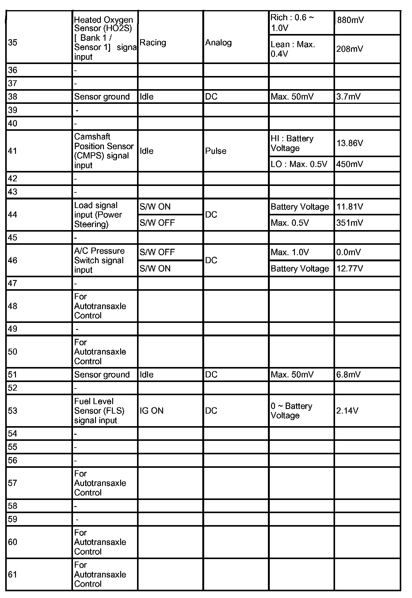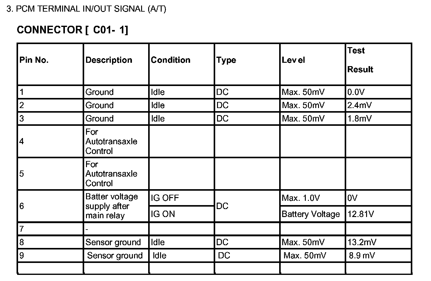 PCM TERMINAL IN/OUT SIGNAL (A/T) - CONNECTOR [C01-1]