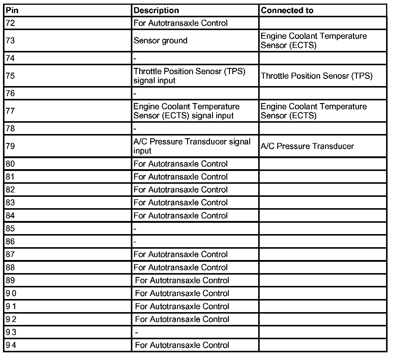 Pin 72 - Pin 94 (C01-1):