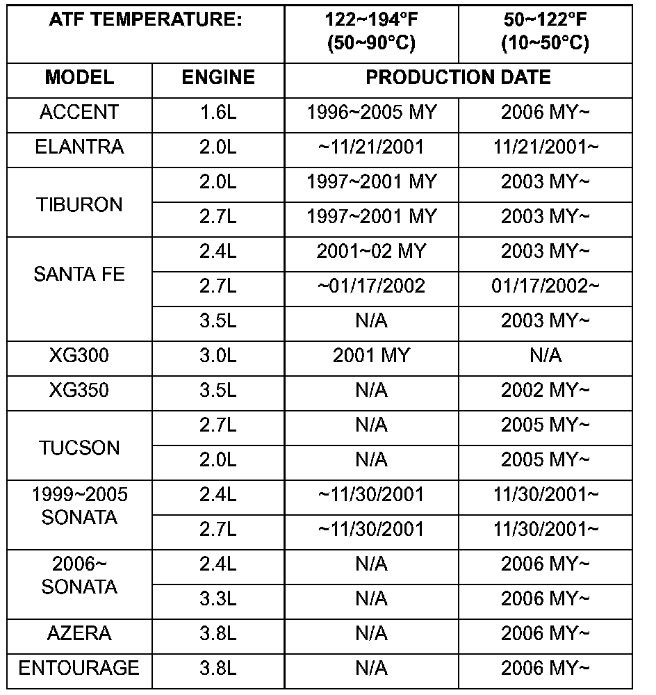 Home >> Hyundai >> 2006 >> Accent L4-1.6L >> Repair and Diagnosis >> Powertrain Management >> Computers and Control Systems >> Engine Control Module >> Technical Service Bulletins >> A/T Controls - Reset and Relearn Adaptive Values