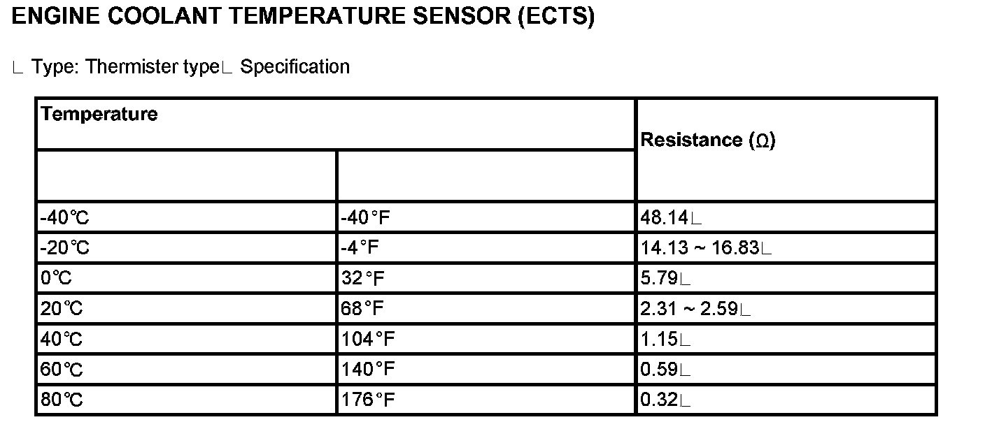 Engine Coolent Temperature Sensor (ECTS) - Specification: