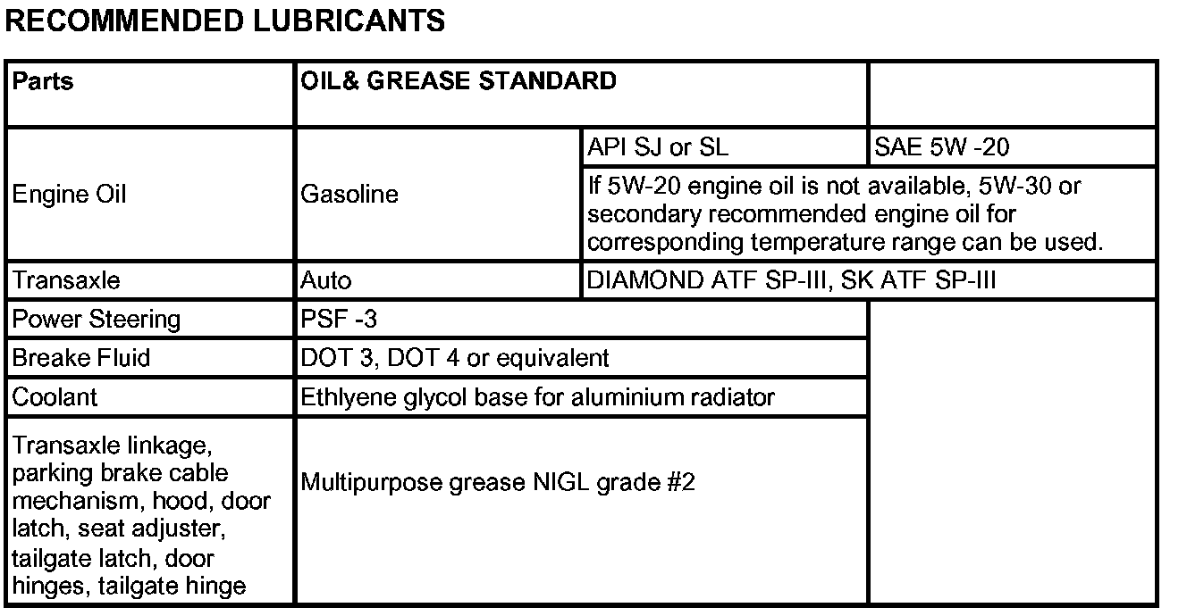LUBRICANTSRecommended Lubricants: