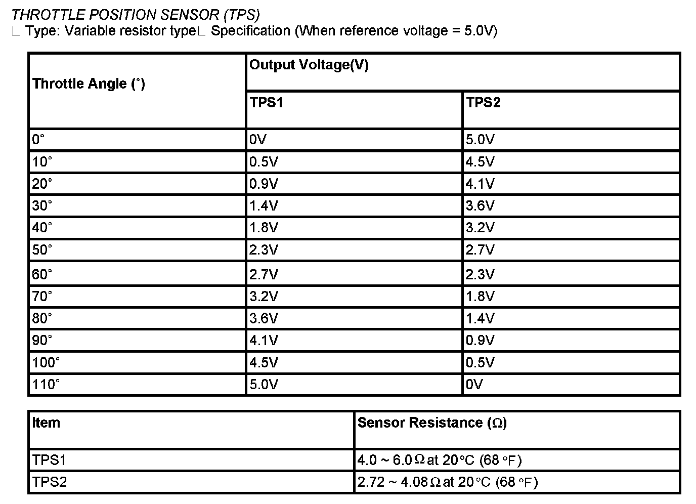Throttle Position Sensor (TPS) - Specification: