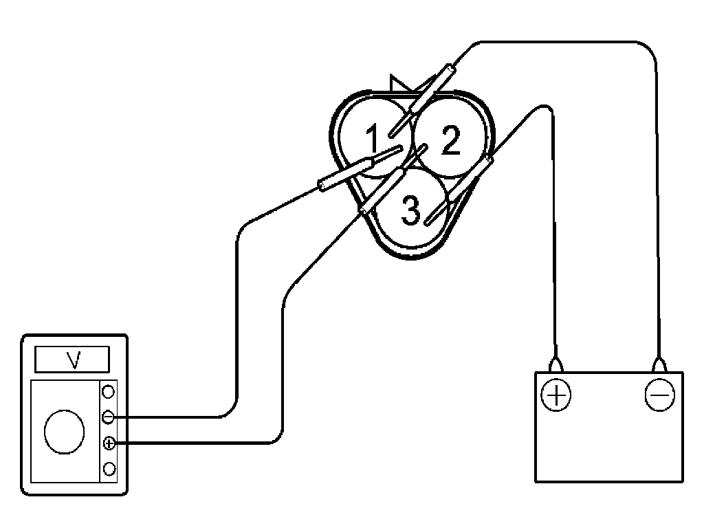 4. Check that there is voltage change from approx. 0 V to 11 V or more between terminals 3 and 1.