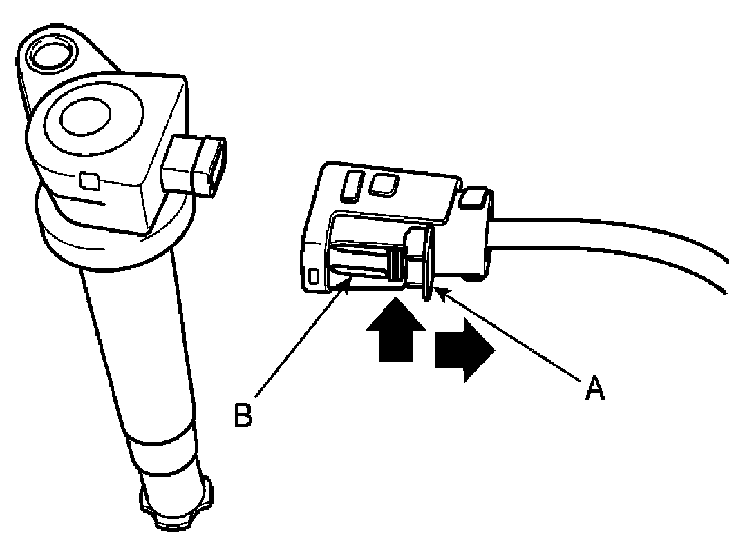 NOTE: When removing the ignition coil connector, pull the lock pin (A) and push the clip (B).