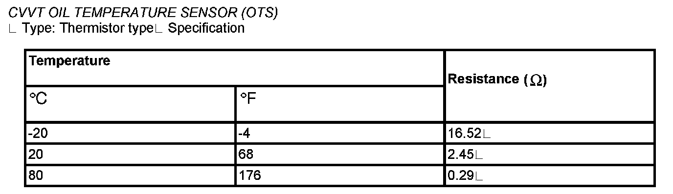 CVVT Oil Temperature Sensor (OTS) - Specification: