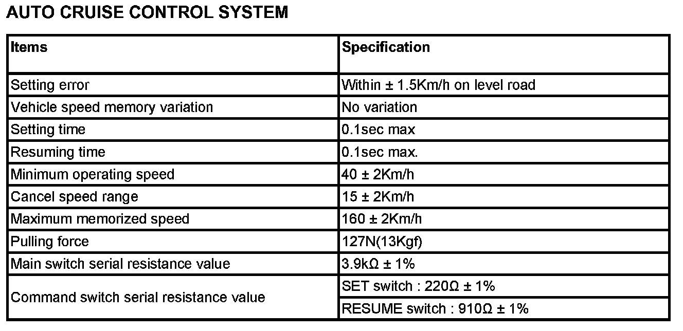 Auto Cruise Control System - Specification: