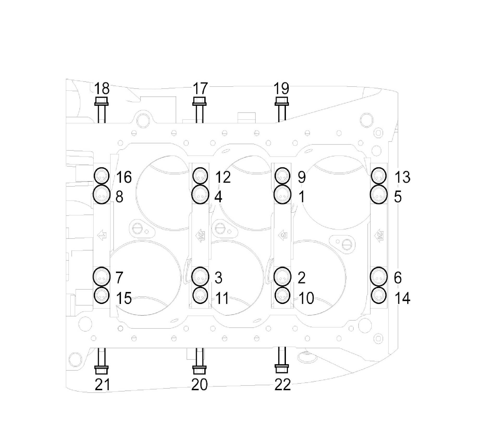 Main bearing cap bolt tightening torque1 - 8 49.00 Nm (5.0 kgf-m, 36.16 ft. lbs.) + 90°