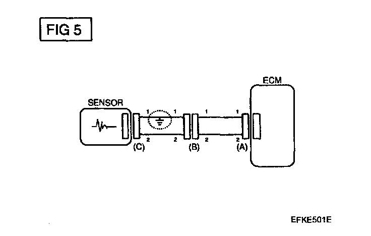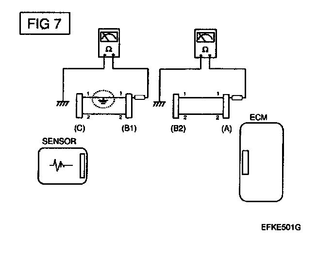 a. Disconnect connectors (A), (C) and measure resistance between connector (A) and (C) as shown in (FIG. 2].