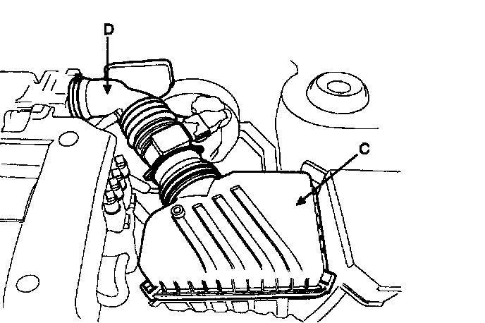 a. Air cleaner upper cover (c) and air intake hose (D).
