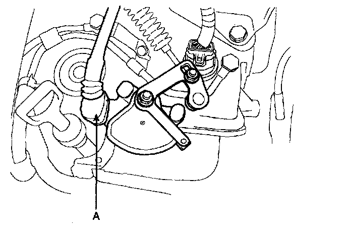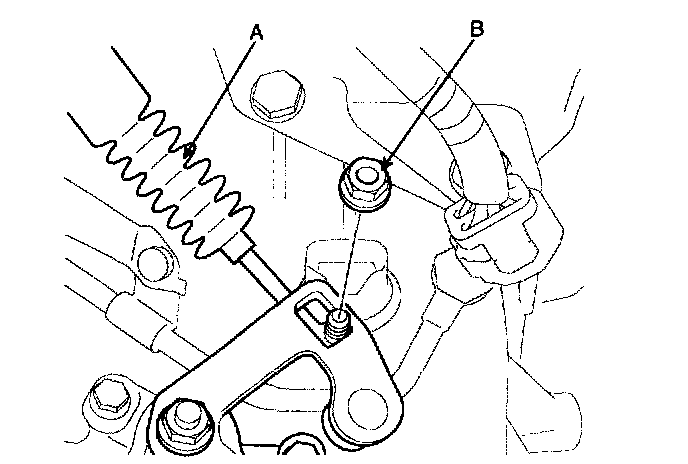 7. Remove the control cable to transaxle range switch (A) mounting nut (B).