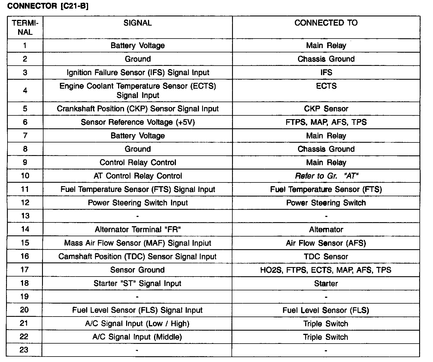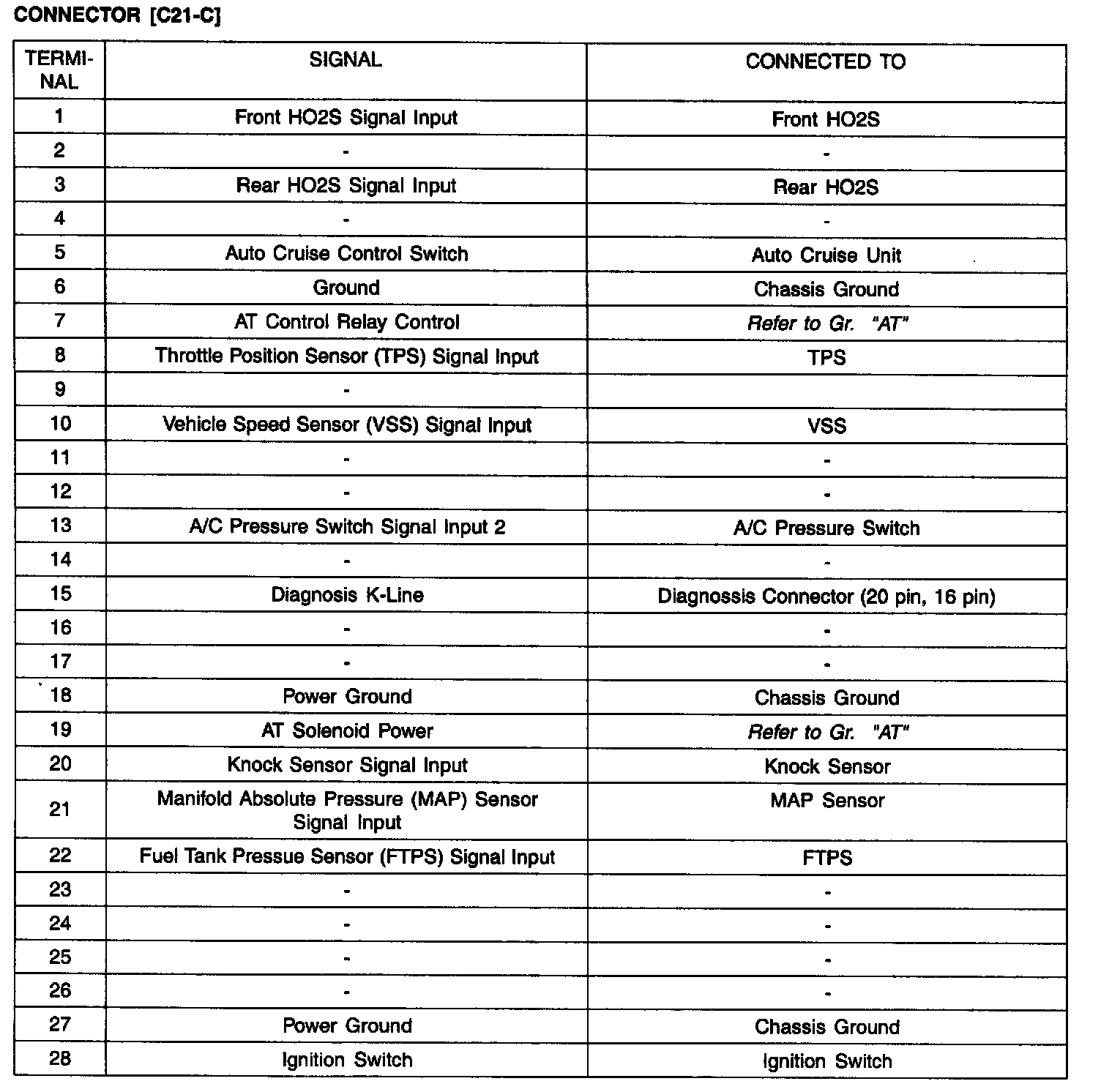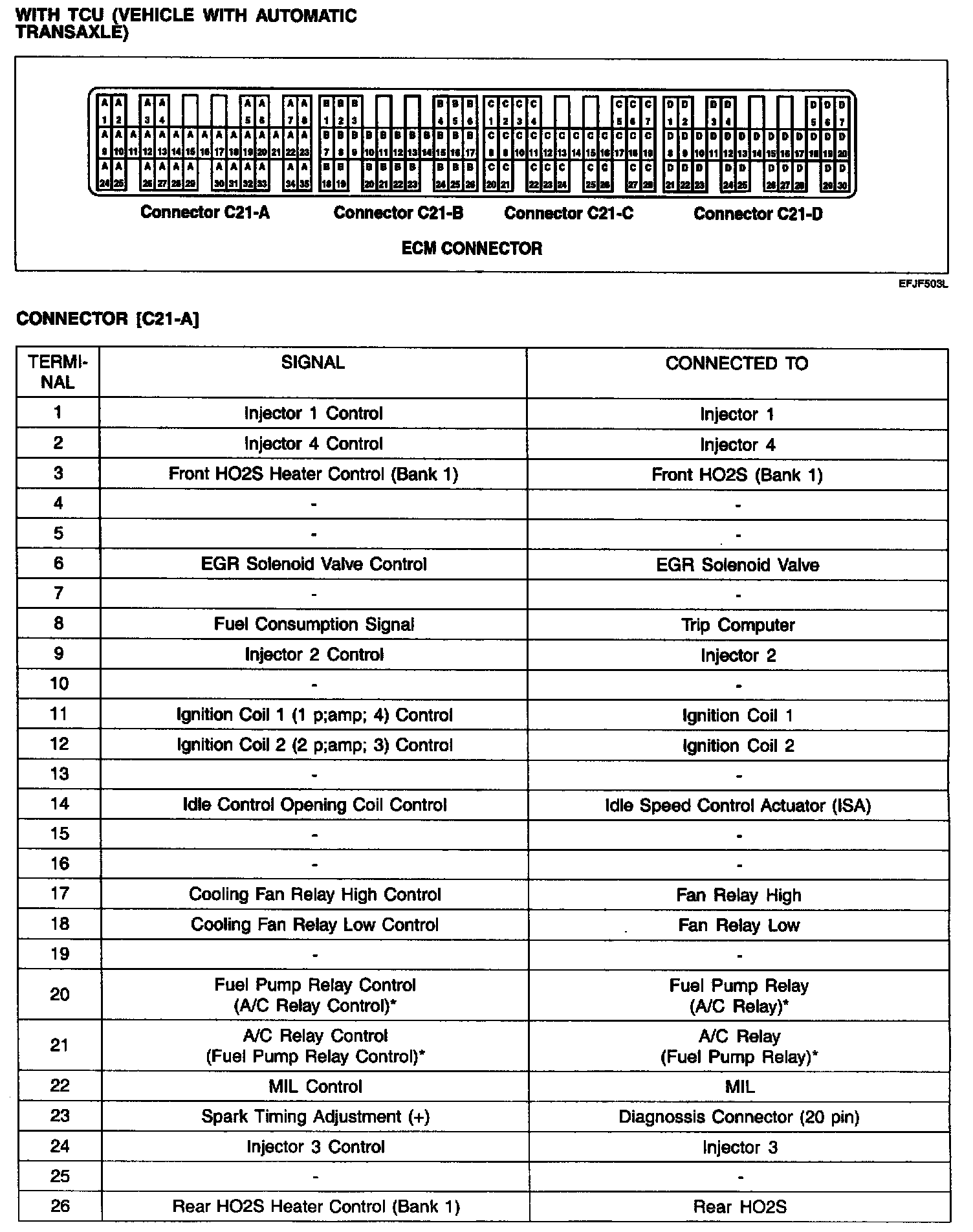 ECU Terminal Layout With TCU: